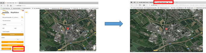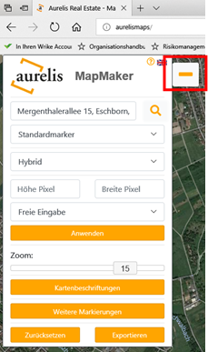 Einstellungen am Kartenausschnitt vorgenommen wurden, wird durch Klick auf