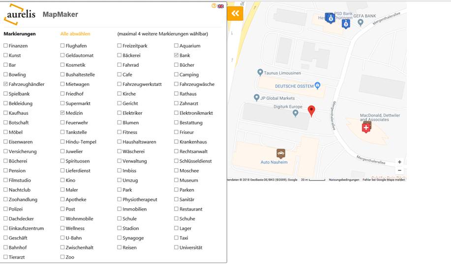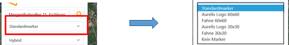 den Marker zentriert. Standardmarker: Aurelis-Logo 60x60: Fahne 60x60: Aurelis-Logo 30x30: Fahne 30x30: Kein Marker: |