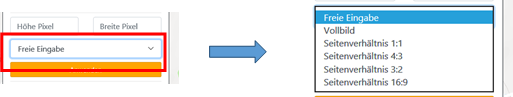 vorbelegter Auswahl-Optionen ausgewählt werden: Das Seitenverhältnis