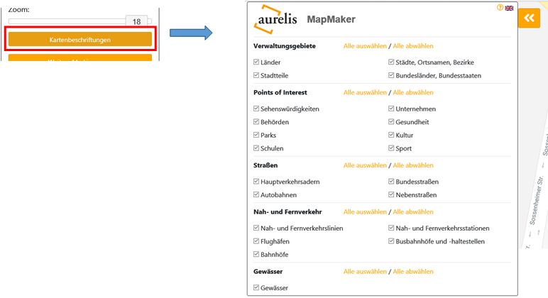 Über den Button „Kartenbeschriftungen“