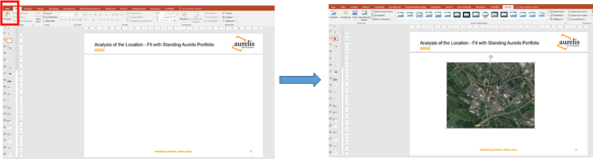 solange nicht mehr als 5.000 Kopien (derselben Bilddatei) angefertigt werden. Im Zieldokument (z. B. Powerpoint-Präsentation) können Sie den Kartenauschnitt dann über „Einfügen“ oder die